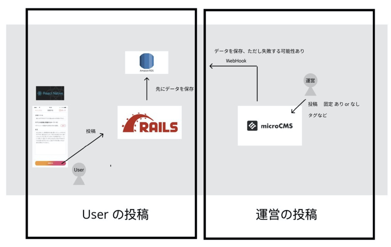 一方で、コンテンツを投稿する際に、運営側はmicroCMS経由で、ユーザー側はアプリ経由で、と別々の設計になった場合に、この記事の内容がお役に立てば嬉しいです。