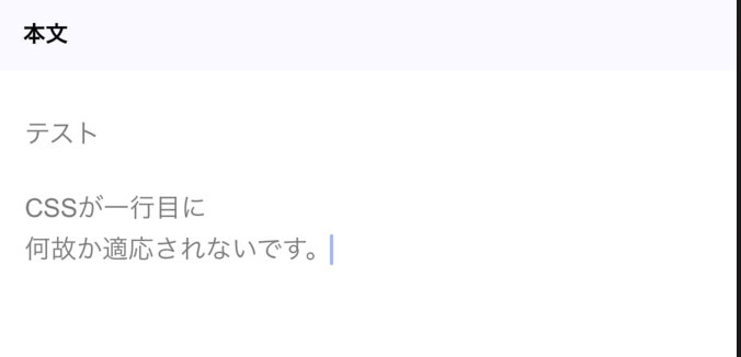 "テスト<div><br></div><div>CSSが一行目に</div><div>何故か適応されないです。</div>"