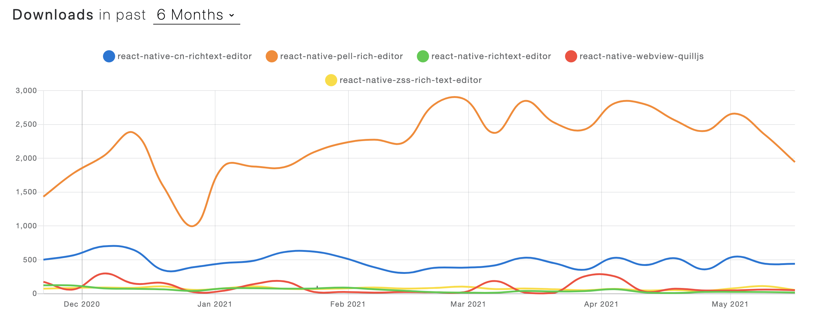 npm trendsでは、react-native-pell-rich-editorが直近の半年間で最もダウンロードされてました。