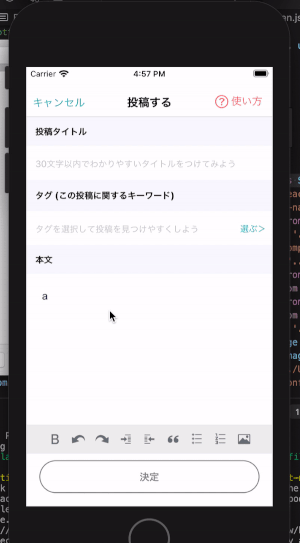 以下は、react-native-pell-rich-editorをインストールし、何かを入力をしようとタップした時の挙動です。.gif)