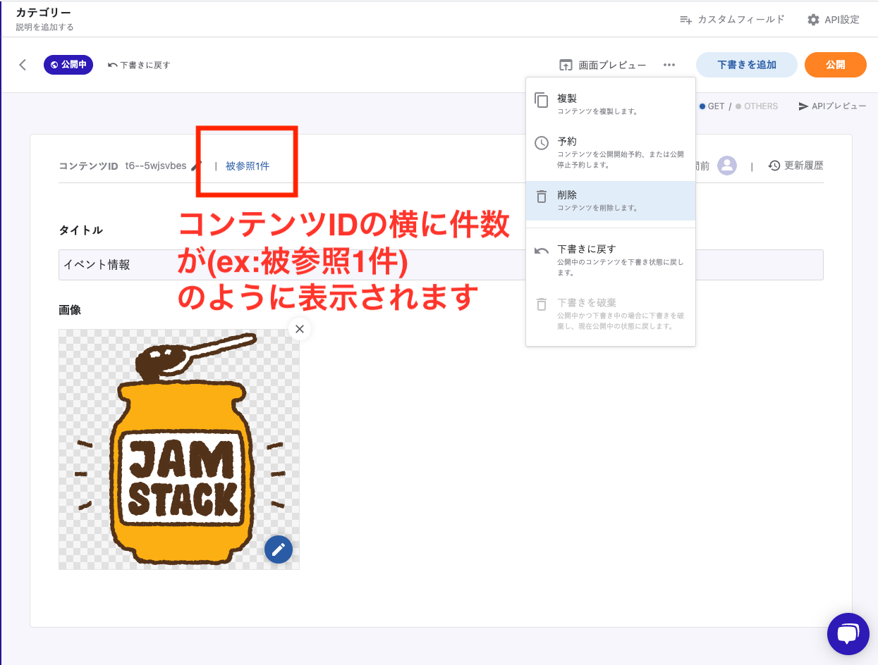 具体的には参照設定を解除しない限り、参照されているコンテンツやAPIを削除できないような仕様を追加しています。