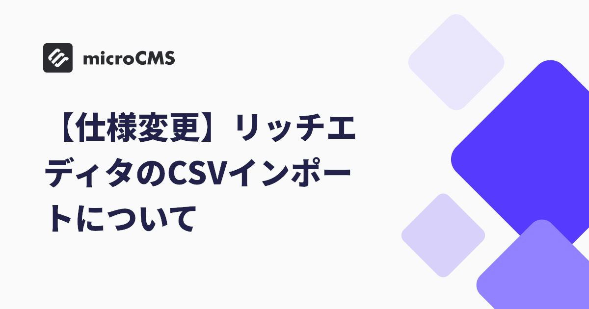 リッチエディタの入稿をCSVインポートで行う際、リッチエディタのWRITE APIと同様にHTML文字列での入力が可能になります。