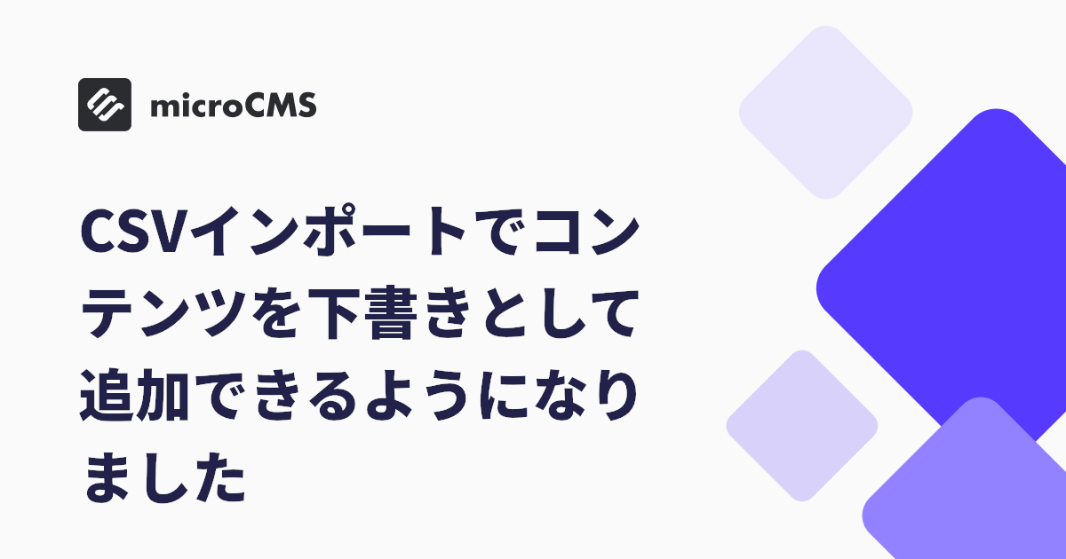下書きのコンテンツをCSVインポートが可能になったことで、運用中のサービスでもCSVインポート機能がご利用しやすくなったと思います。