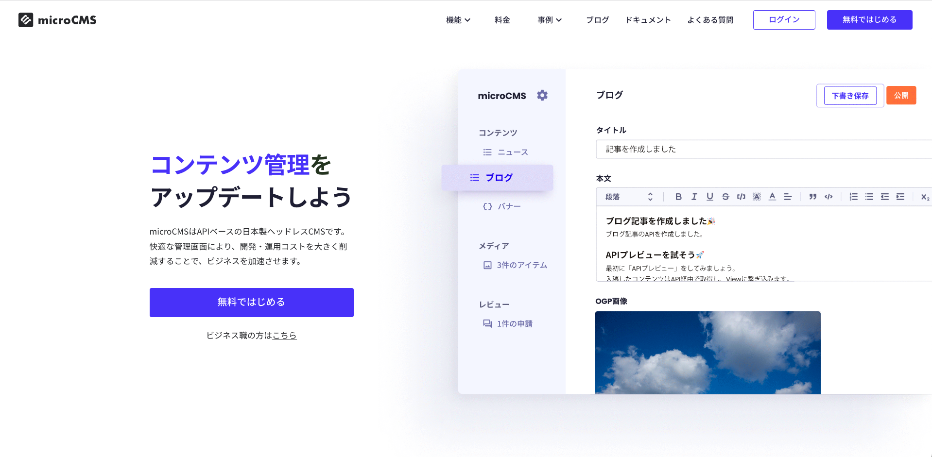 microCMSはAPIベースのCMS(ヘッドレスCMS)です。エンジニアを中心にご好評いただいており、特にモダンな技術スタックを利用したウェブ制作・アプリ制作において多くのプロジェクトでご利用いただいております。