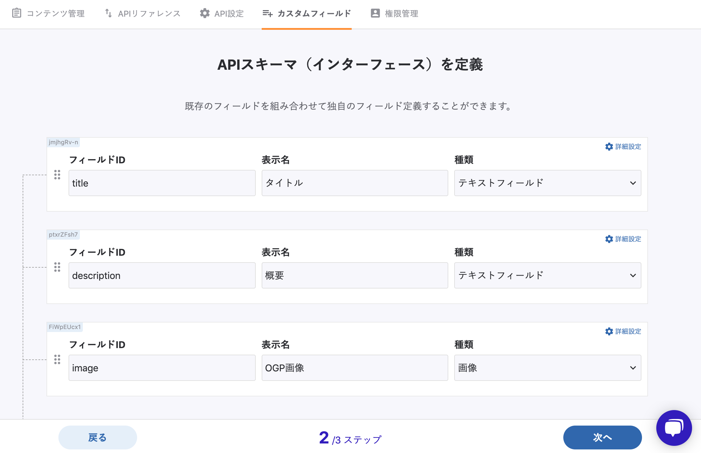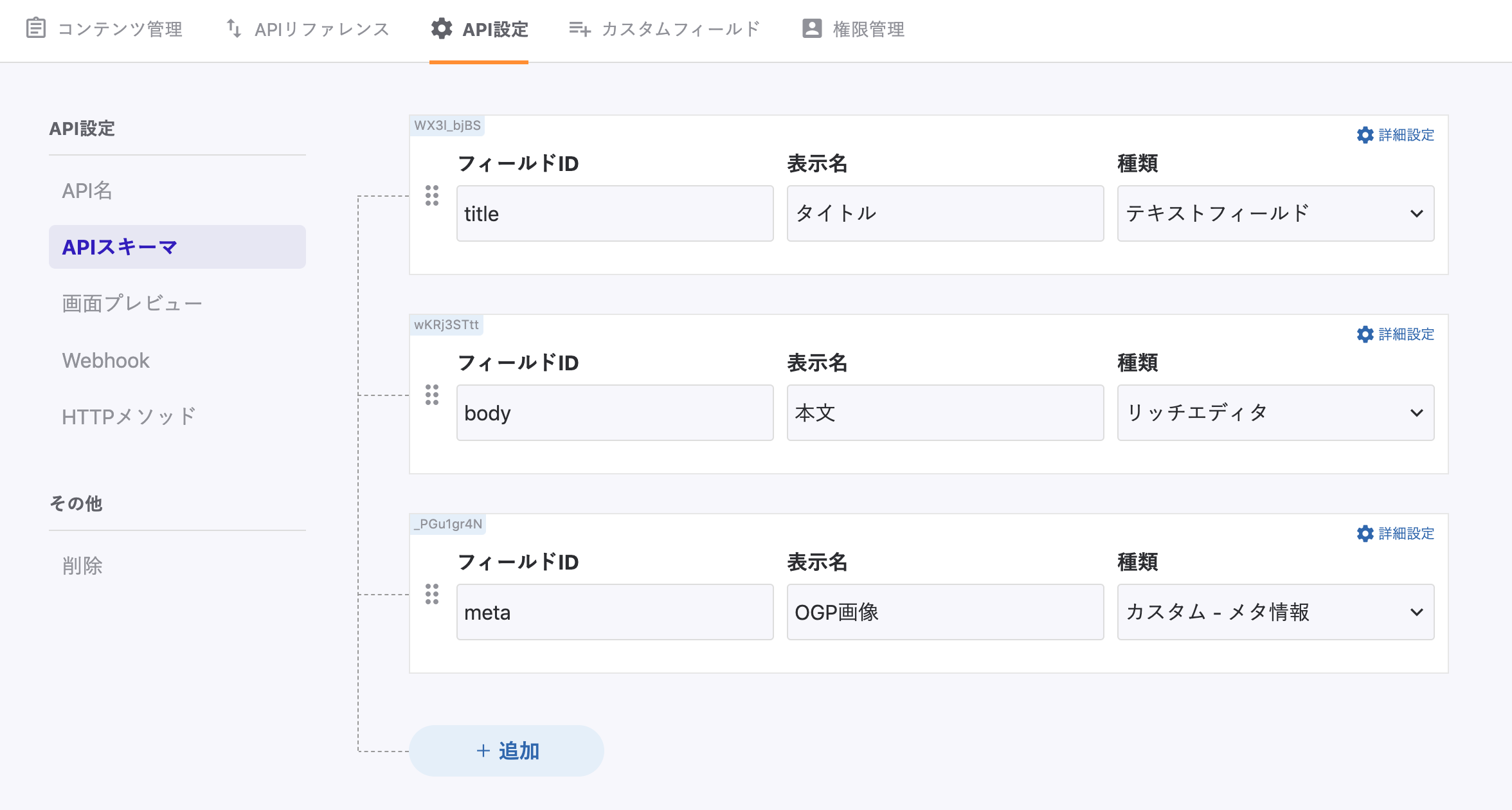 カスタムフィールド内における必要なスキーマを設計してください。